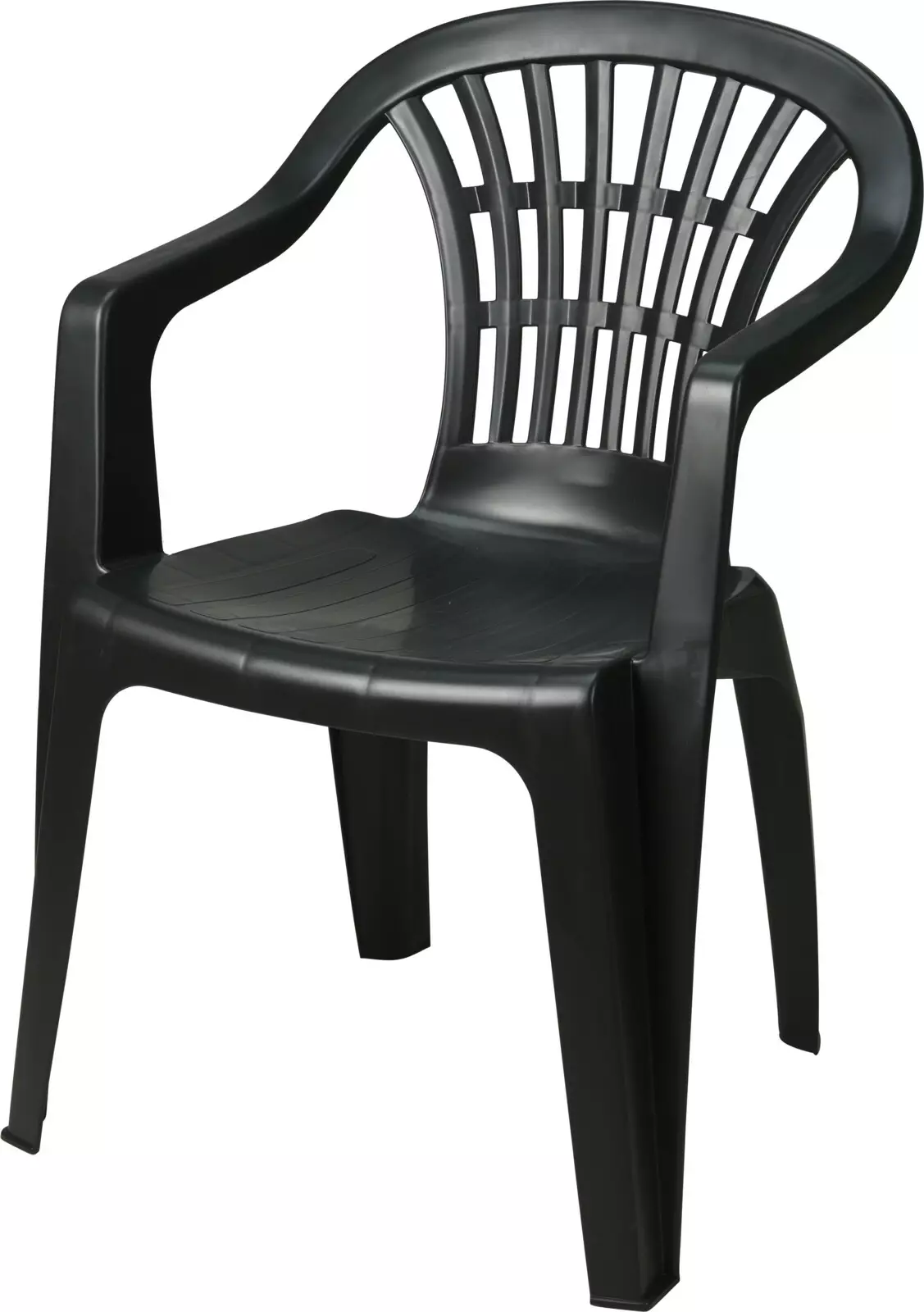 Stolen är tillverkad i tålig polypropenplast som står emot väder och vind. Ytan är slät med en lätt glans, vilket gör stolen enkel att torka av och hålla ren – ett smidigt val för utomhussäsongen. Den djupa svarta nyansen (antracit) ger ett stilrent, neutralt intryck som smälter in i de flesta miljöer.