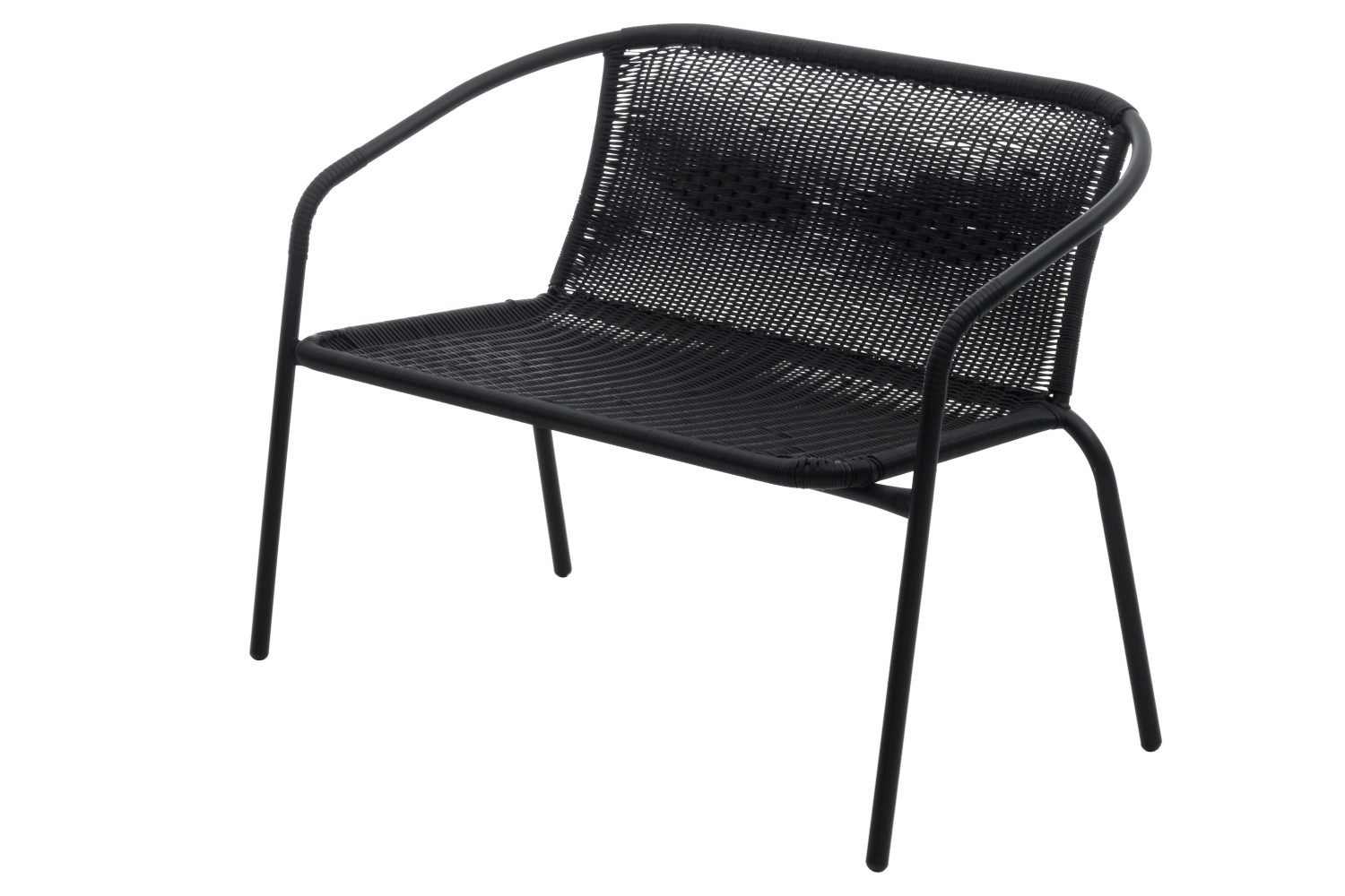 Snygg svart pulverlackerad trädgårdsbänk, mått 113 x 60 x 75 cm.