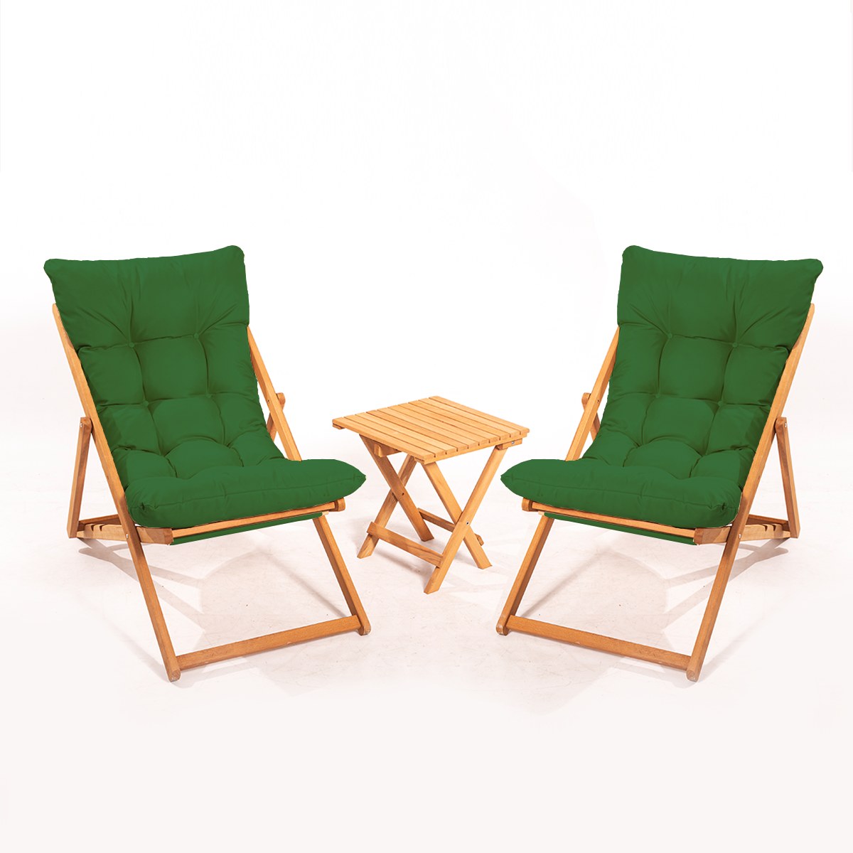 Bordet mäter 40 cm i bredd, höjd och djup, vilket ger gott om plats för drycker, snacks eller en bra bok. Stolarna, som mäter 59 cm i bredd, 90 cm i höjd och 44 cm i djup, erbjuder exceptionell komfort och stöd, så att du kan luta dig tillbaka och varva ner i timmar i sträck.