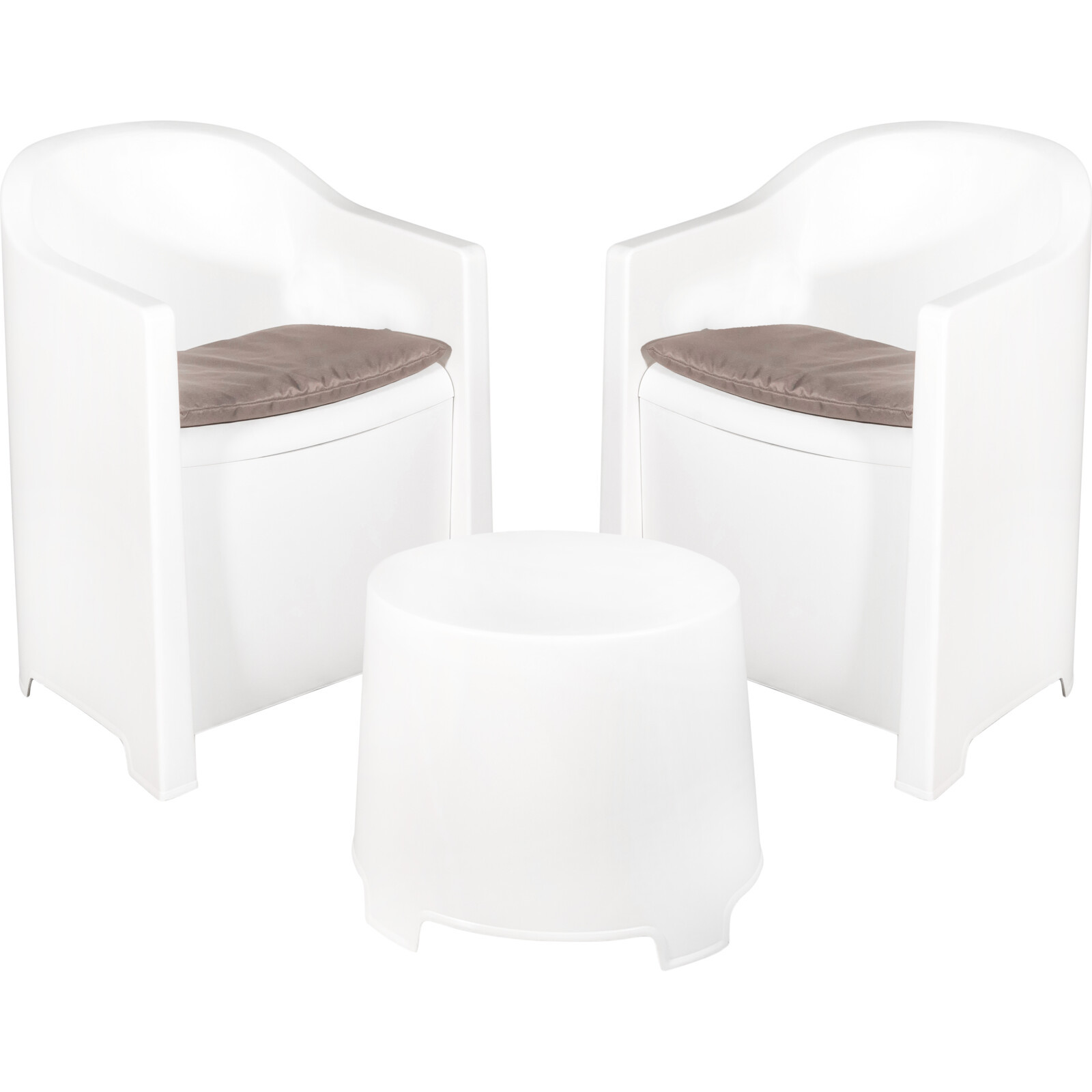 Vitt Luna trädgårdsset, två stolar och bord, elegant och hållbart polypropen.