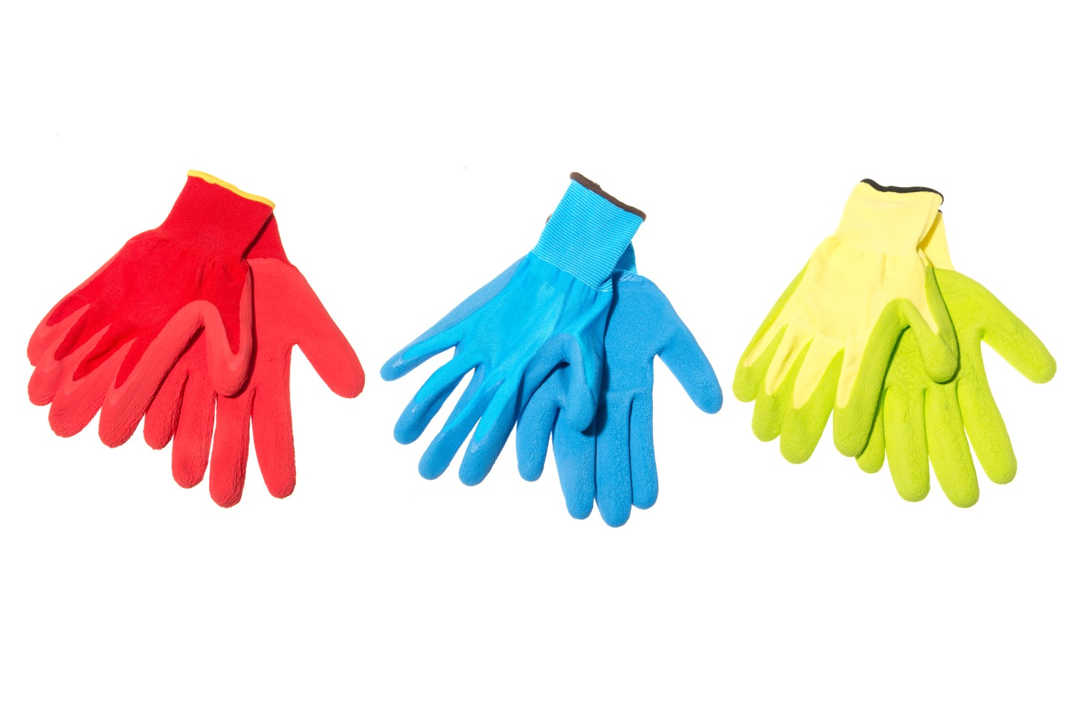 Välsittande och härligt färgade trädgårdshandskar för trädgårdsarbete.