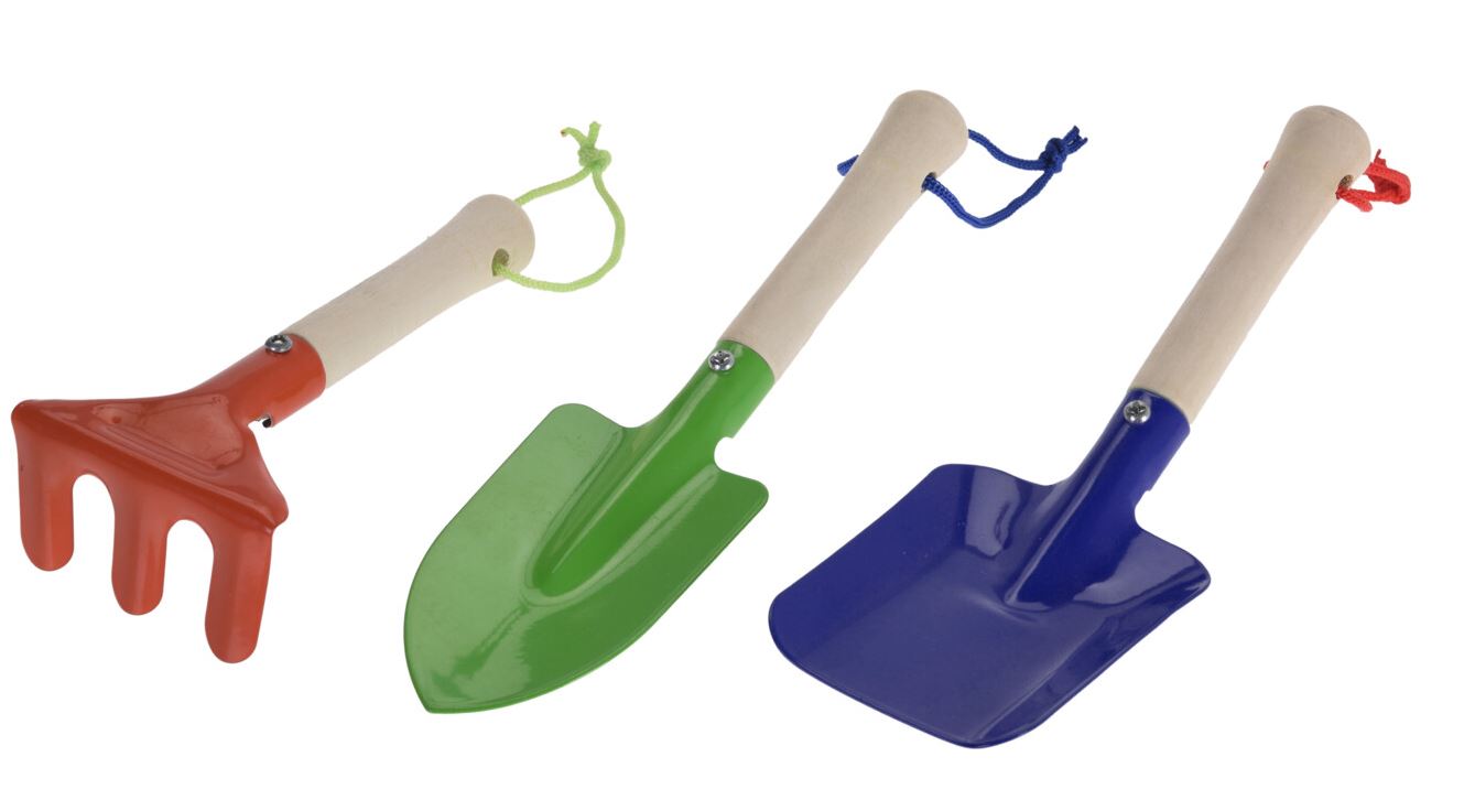 Barn älskar att vara med, och här har dem 3 stycken egna redskap för trädgårdsarbetet.
