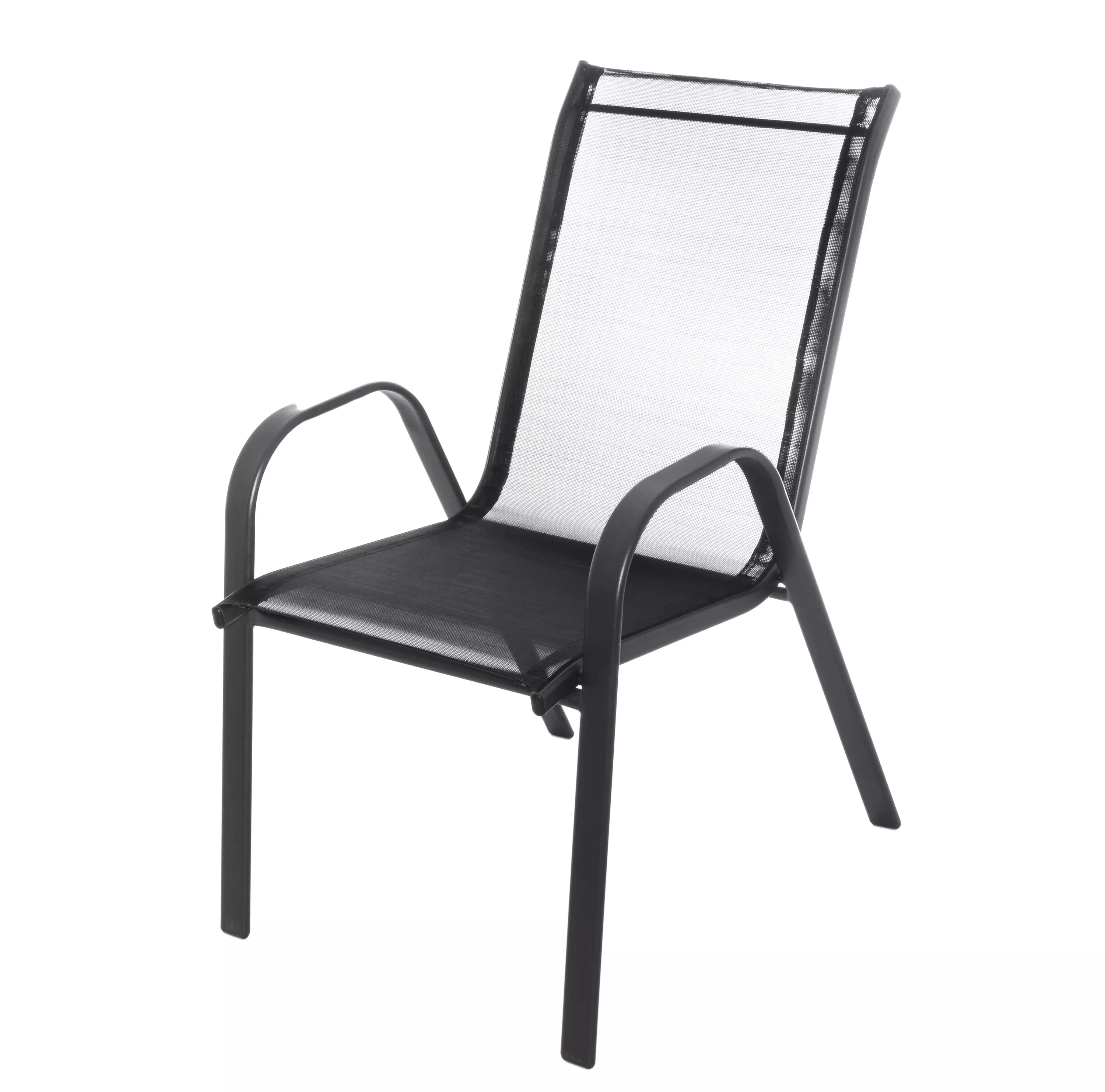 Högkvalitativ trädgårdsstol Cannes för hemmet eller stugan. Fåtöljen har en slitstark pulverlackerad stålram och behagligt textiltyg. Cannes stolar kan också staplas ovanpå varandra, vilket sparar utrymme vid förvaring.
