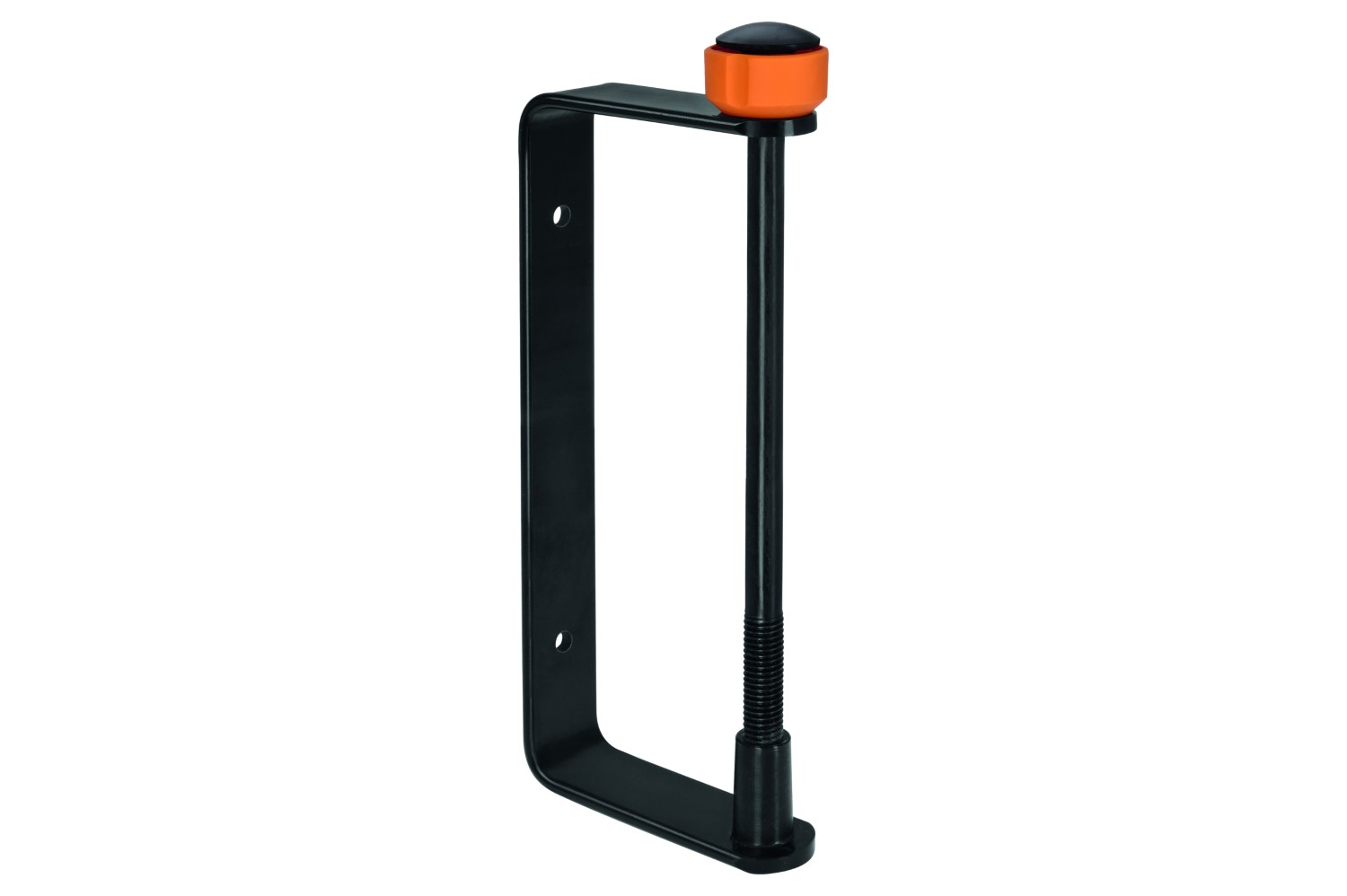 Waterwheel S kan användas på två sätt: fritt placerad i trädgården eller upphängd på väggen med detta väggfäste. Väl monterad kan du ta ner Waterwheel S från väggfästet och nyttja rotationen på 360° för att nå hela bevattningsområdet och sedan hänga upp den igen efter användning.