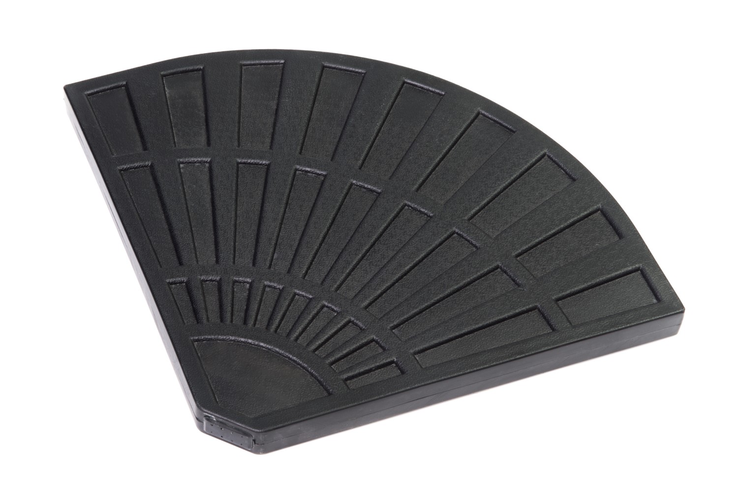20 kg vikt för det kors-formade parasollfoten. Bärhandtag i ytterkant.