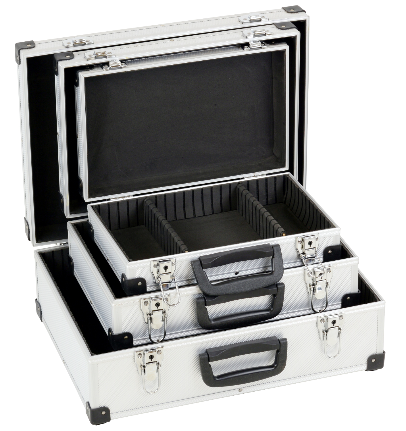Den snygga, låsbara aluminiumväskan är lämplig för många användningsområden, t.ex. för förvaring av verktyg. Riktigt snyggt aluminiumskal, ram MDF + ABS. EVA-skumdynor inuti.