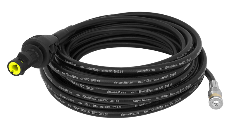 Avloppsrensaren är konstruerad för att öppna igensatta rör och ta bort skräp från avloppsrören. Ett trepunkts effektivt roterande munstycke drar slangen genom röret medan du rengör rörväggarna. Slangen är av styv fiberförstärkt typ, vilket också gör det möjligt för användaren att trycka det cirkulerande munstycket genom rörsystemets böjningar och smala kanaler.