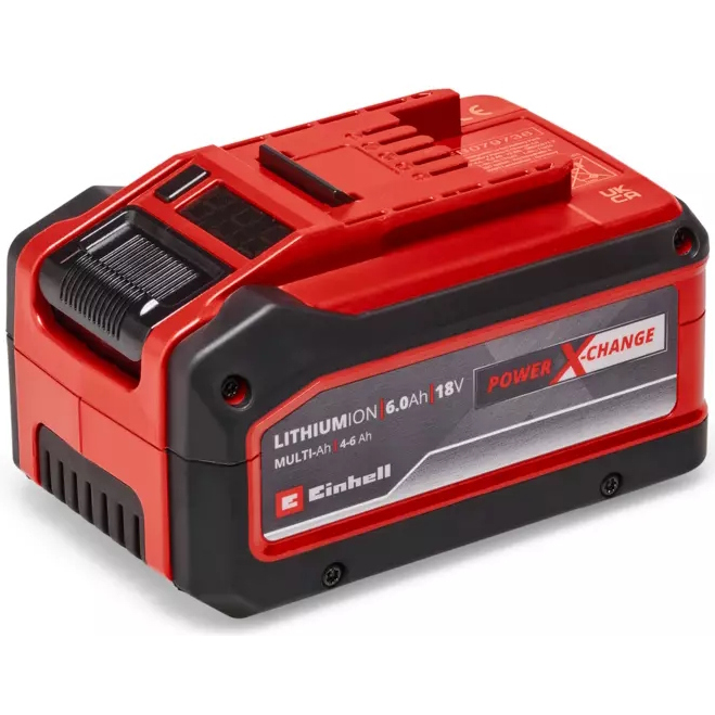 Det mest kraftfulla batteriet i Einhell Power X-Change batterisystem. Detta Multi-Ah PXC Plus-batteri kan användas i antingen 4 eller 6 Ah-läge. Läge 6 Ah ger 50% mer driftstid, men läge 4 Ah förlänger batteriets livslängd med upp till 300%.