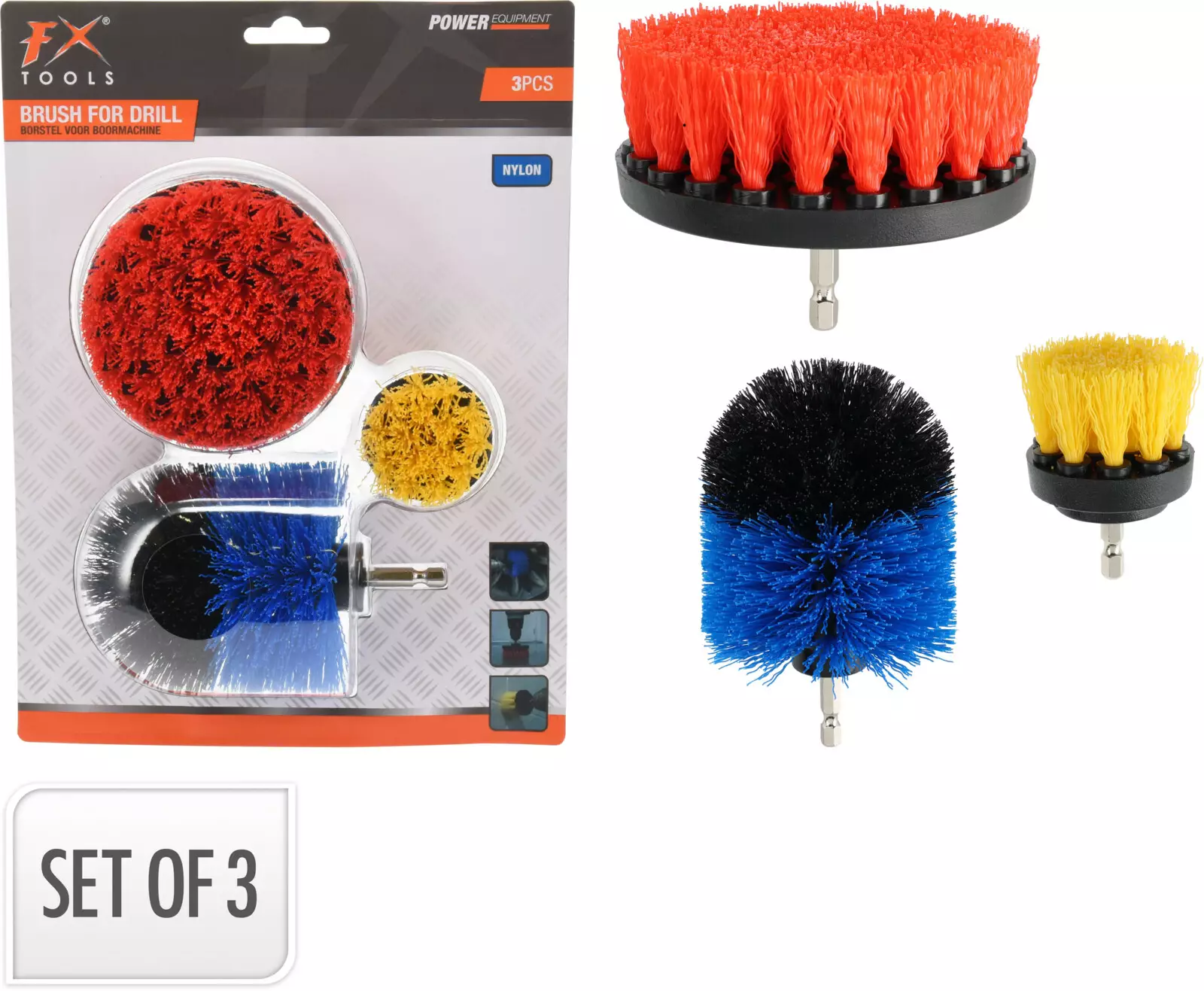 Borstset för borrmaskin, 3 delar, nylon