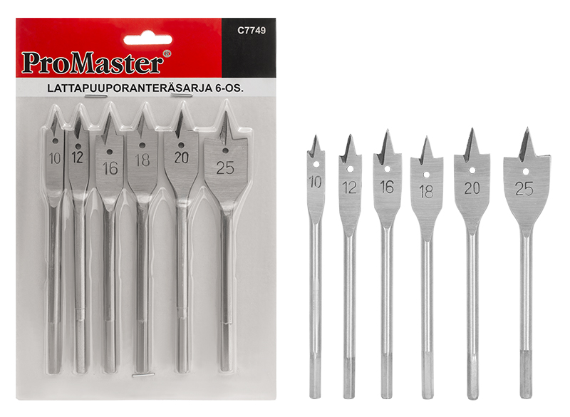 Centrumborrsats 6-delar ProMaster sexkant-fäste 6mm innehåller storlekar: 10, 12, 16, 18, 20 och 25 mm arbetslängd 115 mm total längd 150 mm