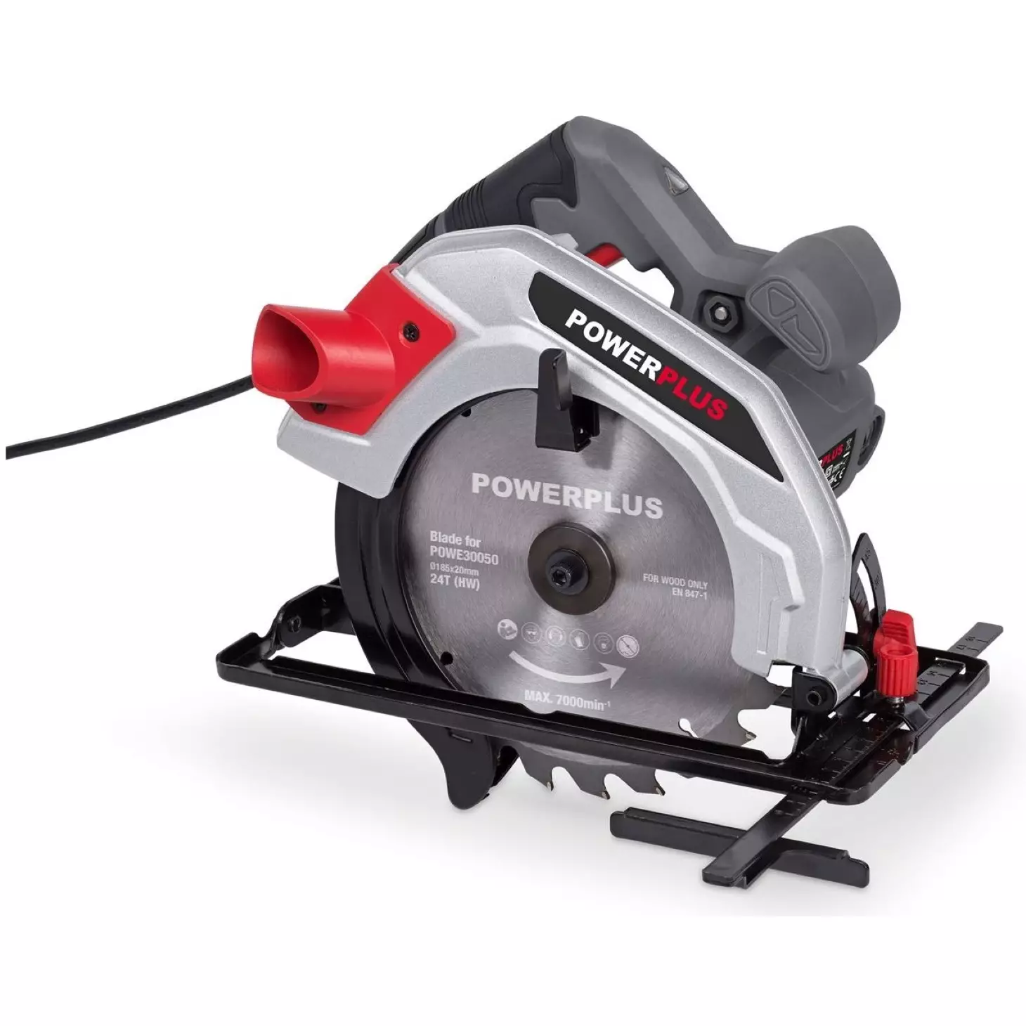 Bladets djup kan enkelt justeras efter uppgiften. Maximalt tillåtet snitt är 65 mm och fassnittet är 45°. POWE30050 är utrustad med ett mjukt handtag och en damm-adapter för anslutning av en dammsugare.