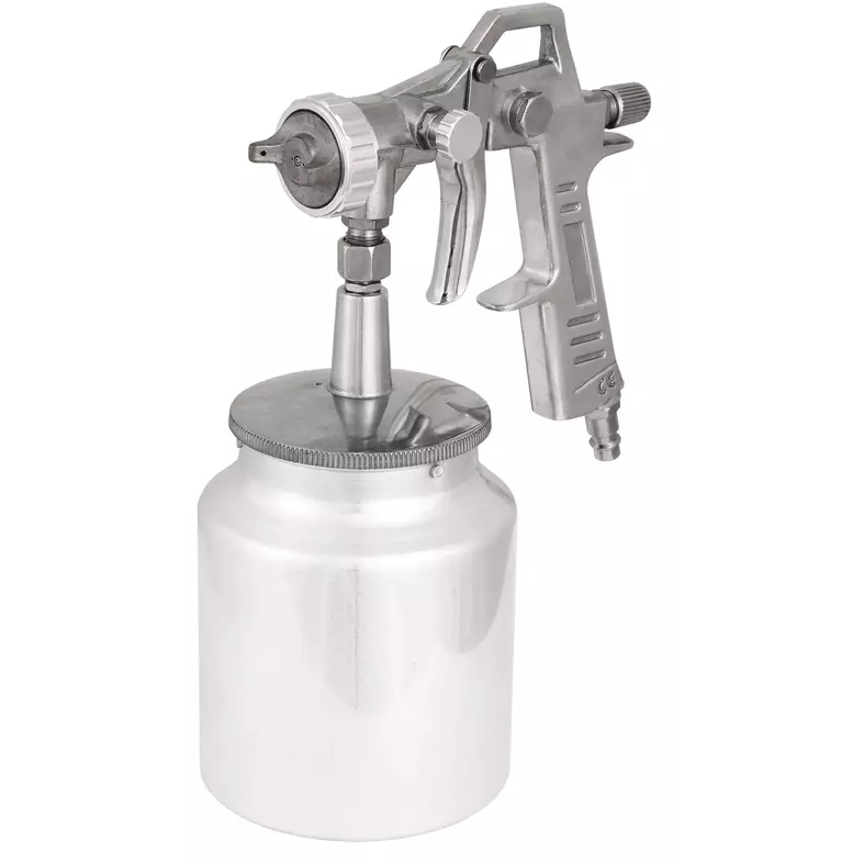 Färgspruta med underskål för exakt och flexibel applicering av färg och lack. Behållare 1,0 liter och justerbar sprutbild.