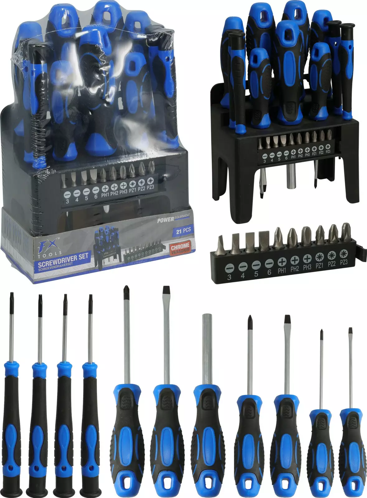 Ergonomisk 21-delars skruvmejselset med ställ – högkvalitativ kromvanadin, precision och styrka