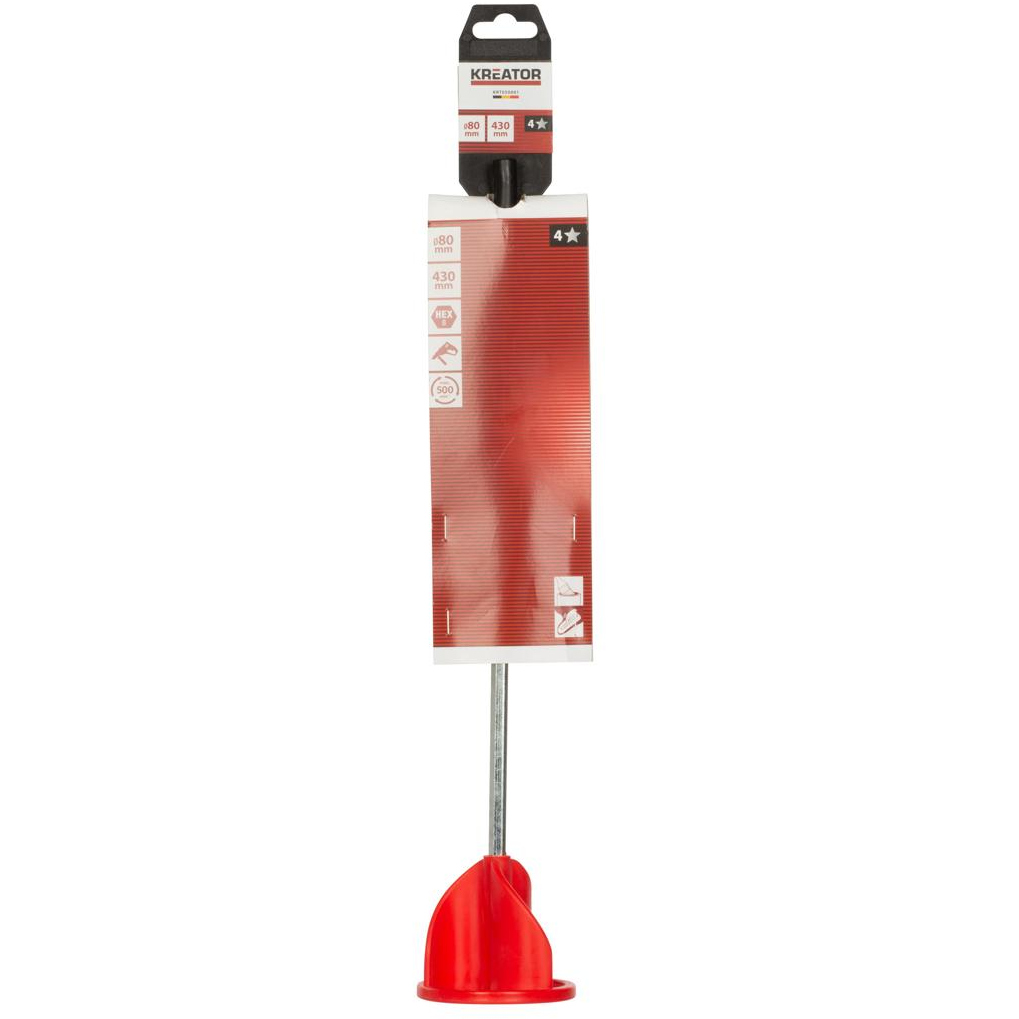 Denna omrörare är idealisk för att blanda små mängder färg och andra vätskor. Den har en diameter på 80 mm och en längd på 430 mm. Anslutningstyp: HEX - 8 mm.