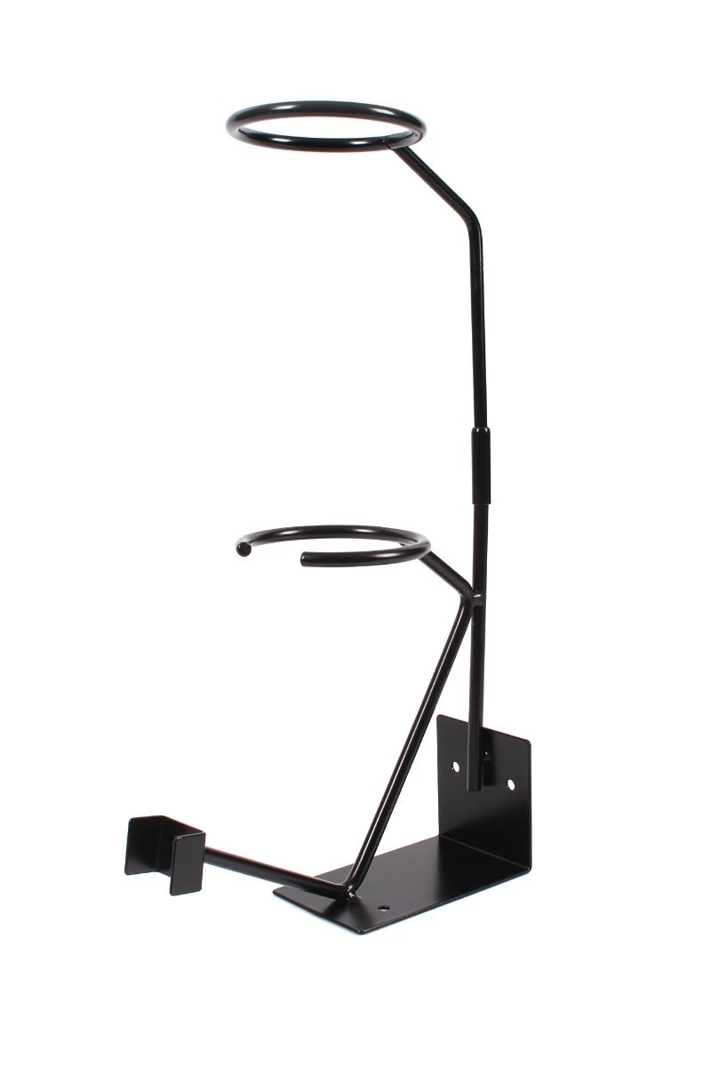 Hållare för färgsprutor med övertank. Fästs på vägg eller bänk med skruvar från hållarens nedre del.