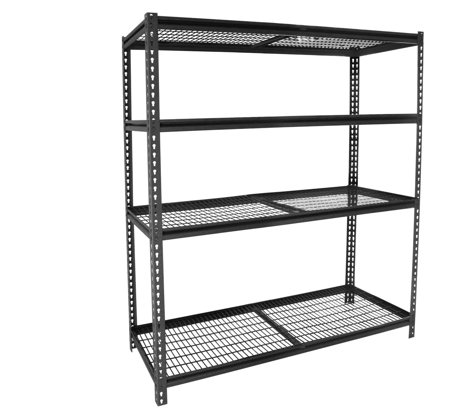 En robust förvaringshylla för verkstäder och lager. Fyra rejäla hyllor ger mycket förvaringsutrymme. Hyllan monteras enkelt utan verktyg. Näthyllor släpper igenom ljus, luft och eventuellt fukt. Den svarta pulverlackerade ytan förhindrar korrosion och ger hyllan ett elegant utseende.