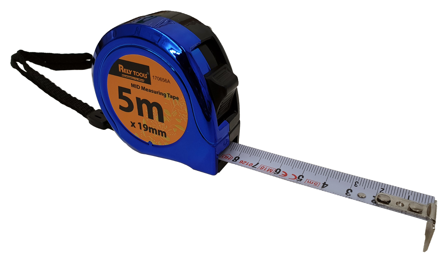 Måttband PRO har ett otroligt snyggt skal i metallic-blå/svart, klämma för att fästas i arbetsbyxorna samt en ögla för att ha runt handleden.