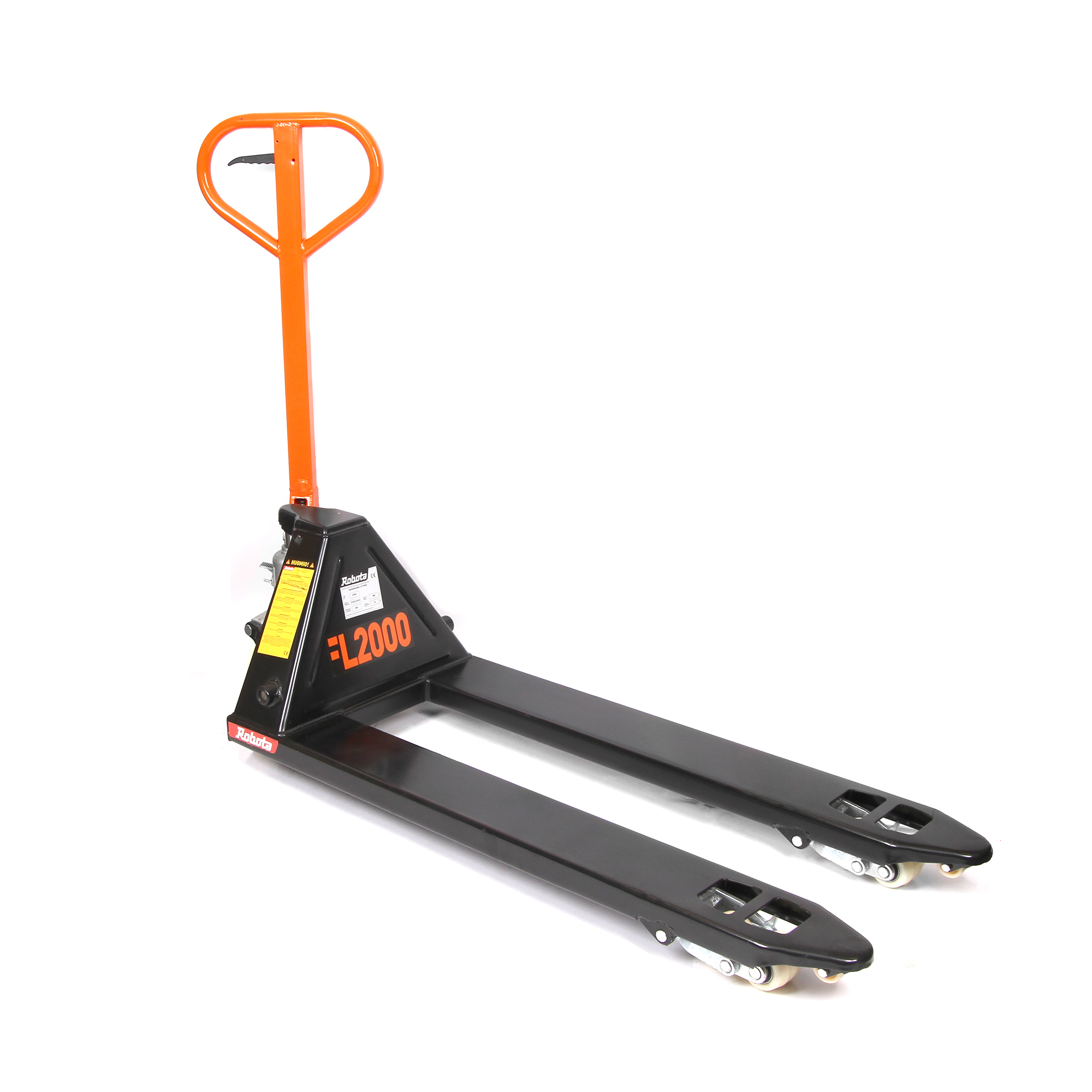 Robota FL2000 är en palltruck för lager, garage och mobil utrustning. Palldragaren är utrustad med ett lättrullande hjul och ett stort svängbart hjul som kan vridas 210 grader. Det grundläggande verktyget för att flytta pallar.