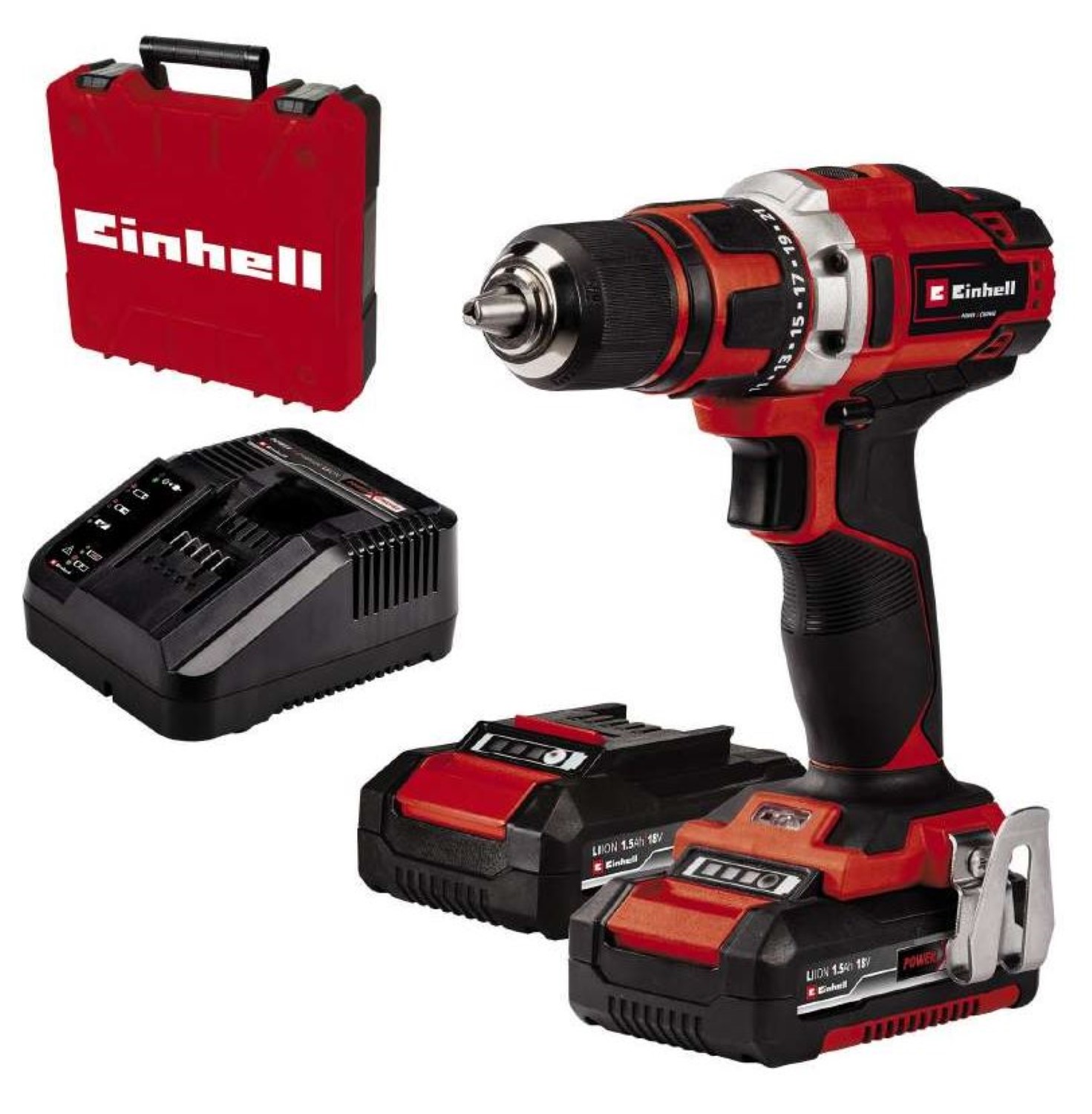 Sladdlös borrmaskin/skruvdragare TE-CD 18/40 Li är en batteridriven skruvdragare från produktfamiljen Einhell Power-X-Change med två växlar, 40 Nm vridmoment och en 13 mm snabbkoppling, levererad med två 1,5 Ah-batterier och en laddare i en bekväm portfölj. LED-lampan och den bälteskroken underlättar arbetet.