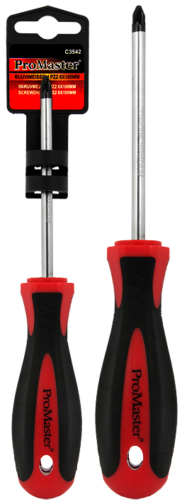 Skruvmejsel pz2 6x100mm -material från krom-vanadinstål -storlek PZ2 6x100 mm -format 2-komponentshandtag -magnetiserad spets -upphängningshål i handtaget -1 års garanti