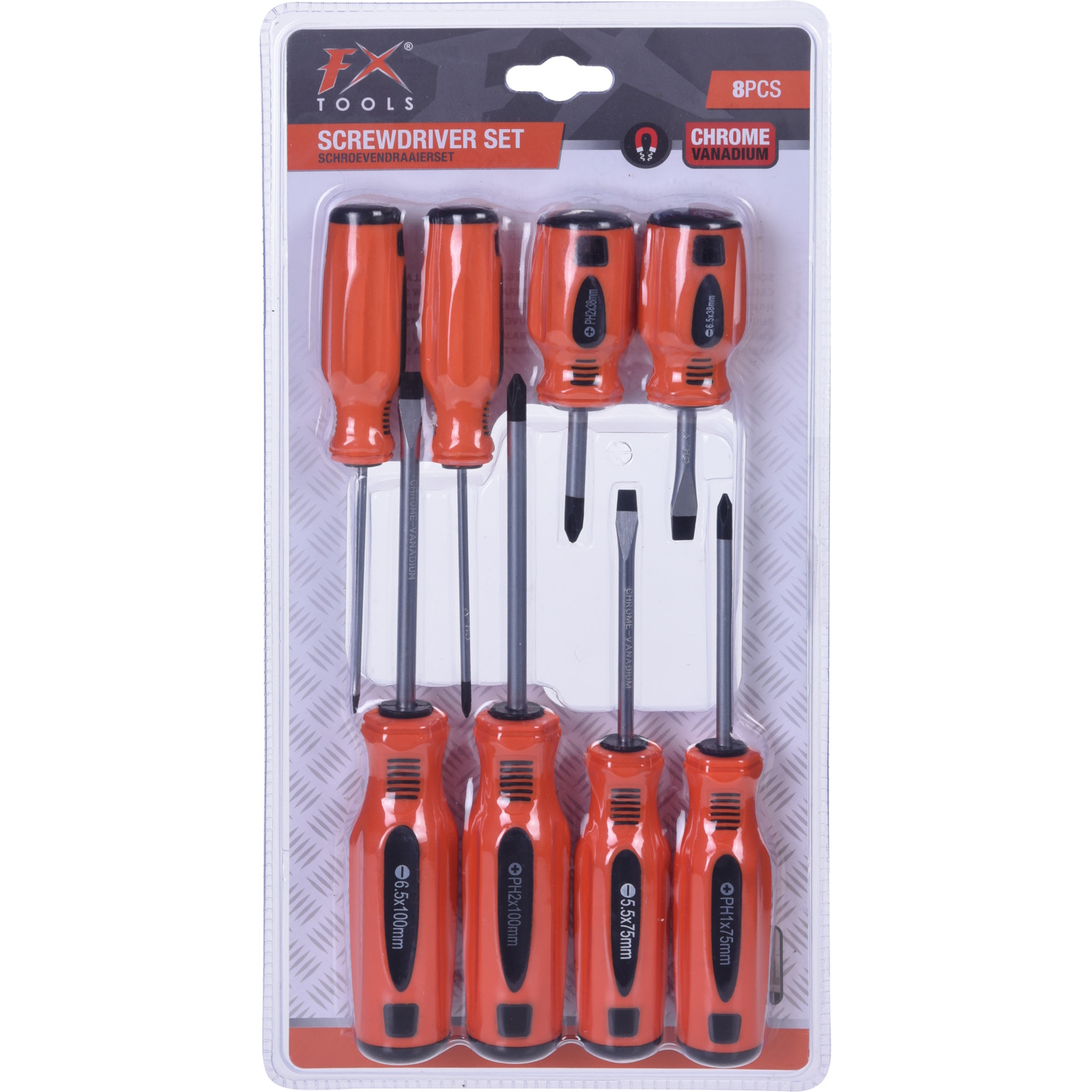 Högkvalitativt 8-delars skruvmejselset, magnetiska spetsar och ergonomiska handtag.