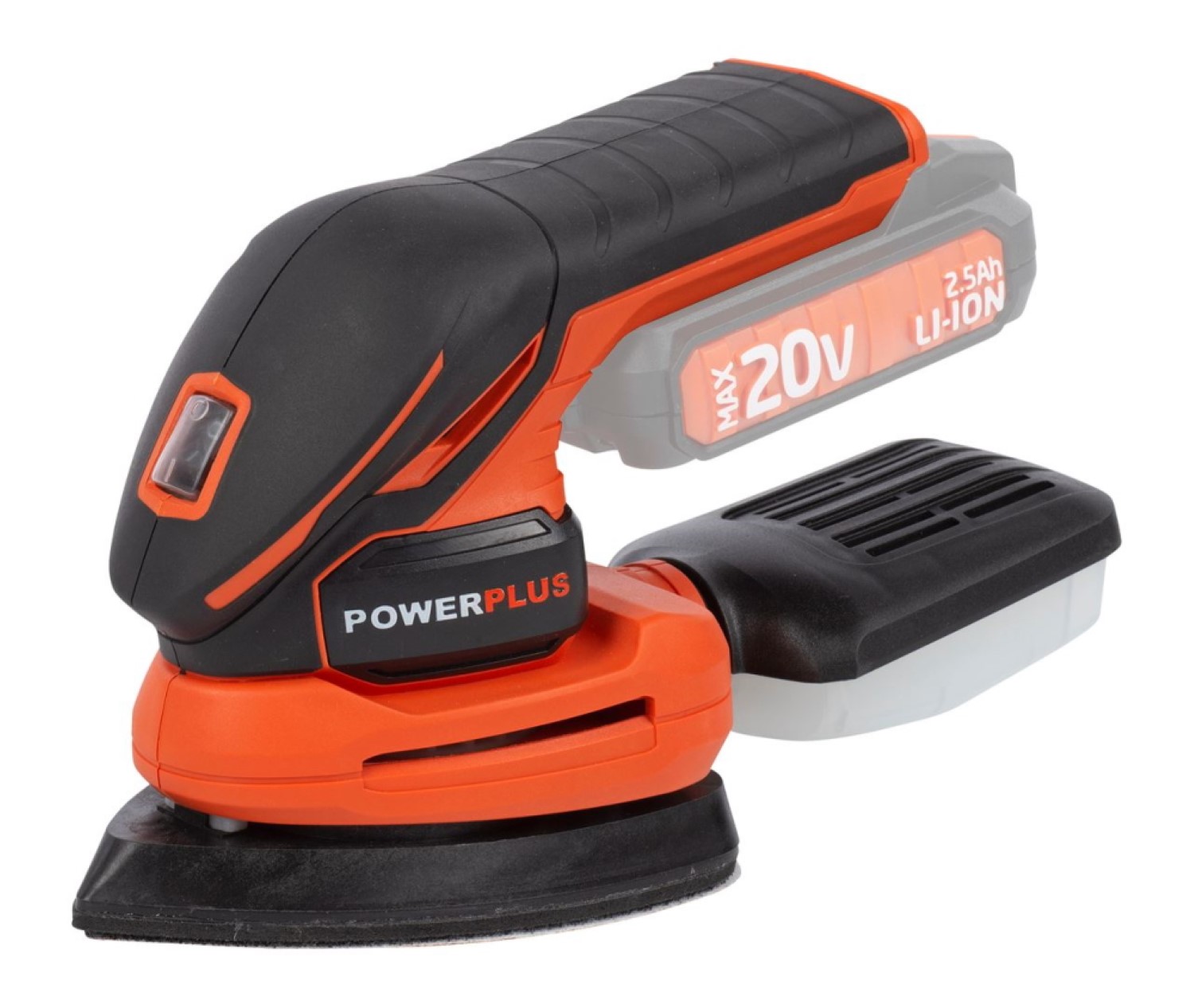 Powerplus 20V ytslipmaskin är bekvämt dimensionerad, sladdlös och lätt att styra tack vare slipskivans form. Slipmusens rotationshastighet är 12 000 rpm. Enheten har en tank för dammuppsamling, vilket ökar arbetskomforten. Förutom enheten innehåller förpackningen 10 stycken sandpapper (2 stycken G80, 4 stycken G20 och 4 stycken G240). Sandpappret har en självhäftande krok och ögla.