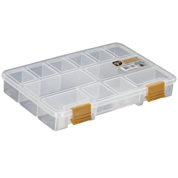 Mano Classic-sortimentlåda är transparent och har ett låsbart lock. Lådan har 15 olika fack. Material ac polypropen.