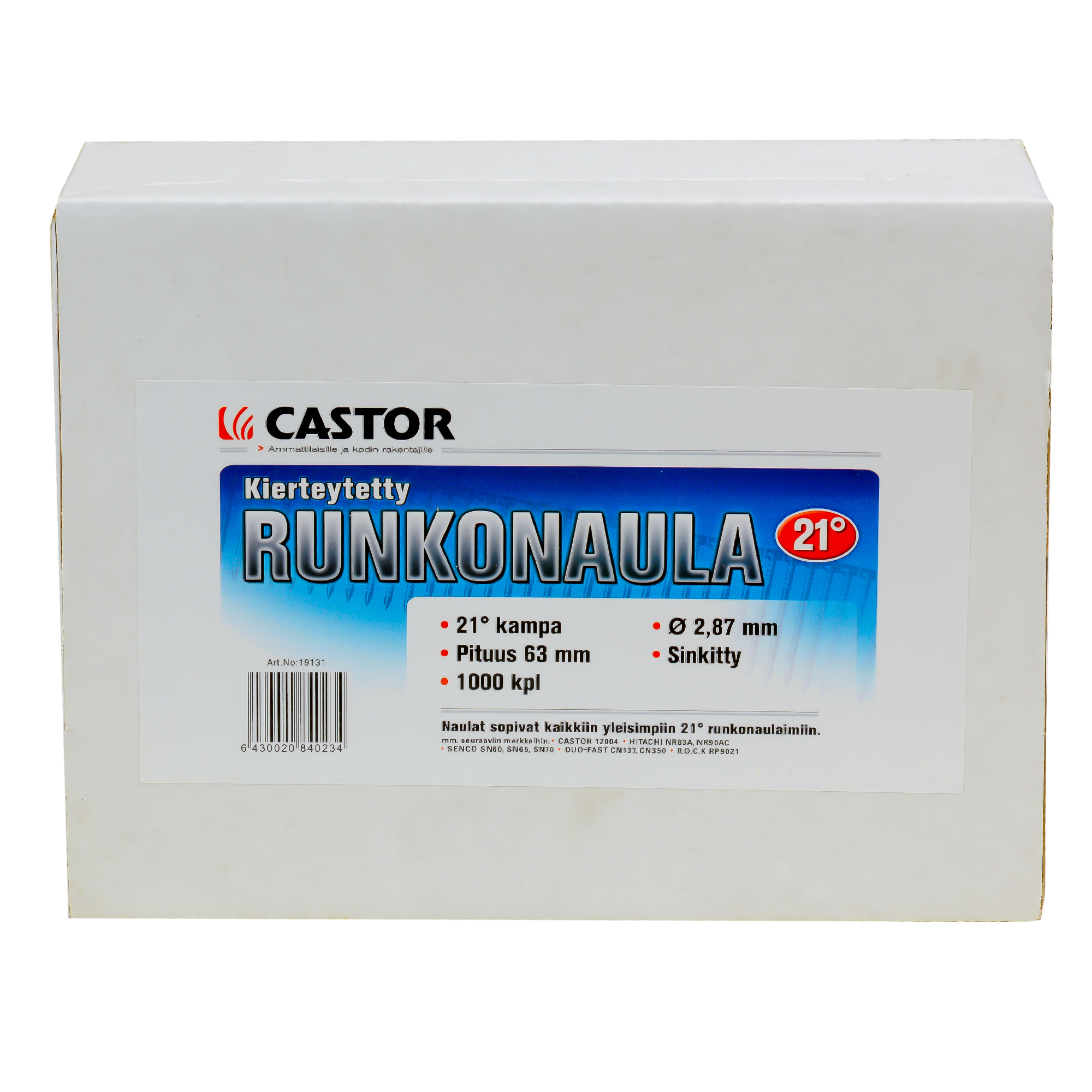 Spik bandad 63 mm 21 grader Castor 21º Längd 63 mm 1000 st Ø 2,87 mm Galvaniserad