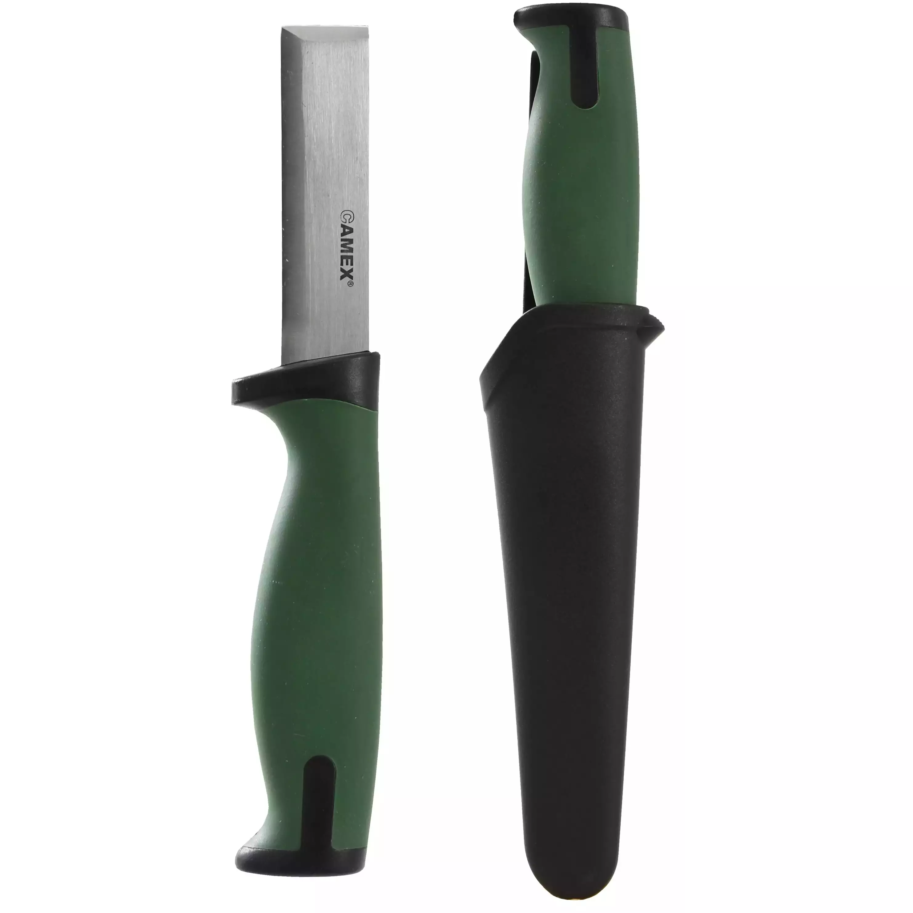 Camex stämjärnskniv är tillverkad av högkvalitativt 5Cr15MoV rostfritt stål. Knivens ergonomiskt formade plasthandtag är gummerat för ett säkert och bekvämt grepp.