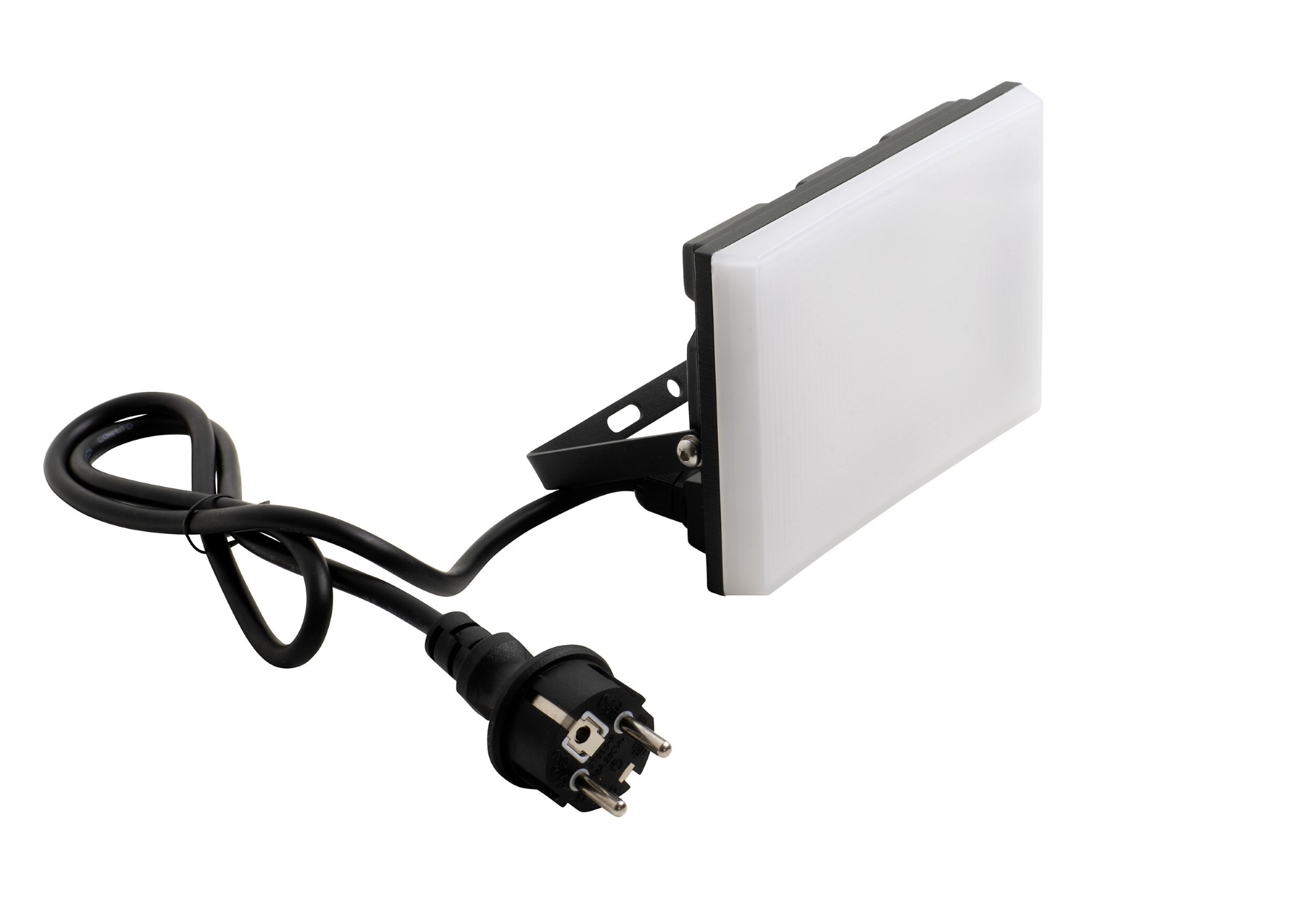 Strålkastaren Airflood led är modern, kompakt och designad för praktisk, trygg och säker belysning av gårdar, lager, passager och parkeringsplatser. Med sin kantlösa design sitter lampan elegant på många olika fasader, och frampanelen ger jämnt och behagligt ljus med hela ytan. Strålkastaren har inställbar belysningsvinkel. Strålkastaren har stickproppsanslutning och gummikabel.
