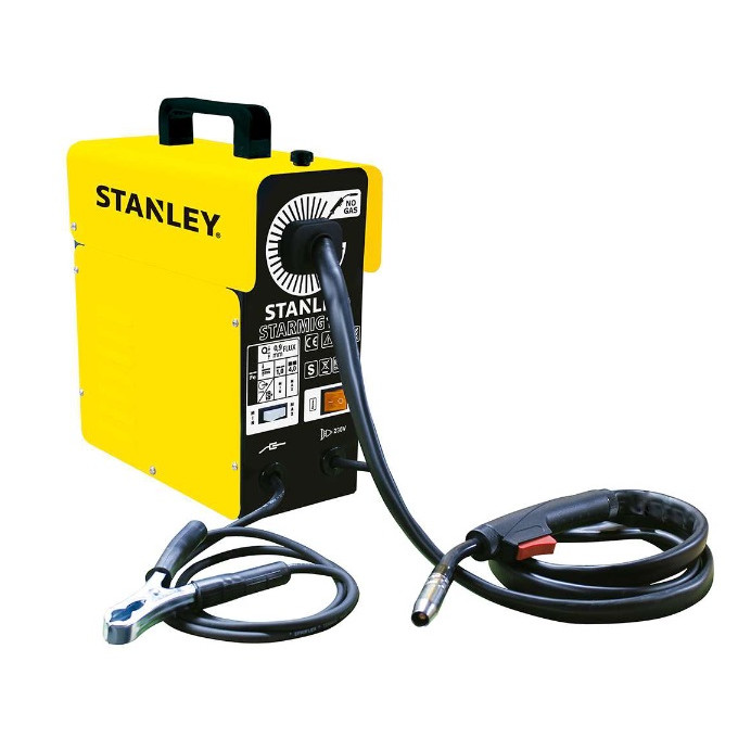 Högkvalitativ Stanley mig-svetsmaskin med en omfattande uppsättning för svetsarbeten. Den gasfria svetsmaskinen Stanley Star Mig 130 är ett utmärkt verktyg för hobby-användning såväl som för professionellt bruk för krävande reparationsarbeten.