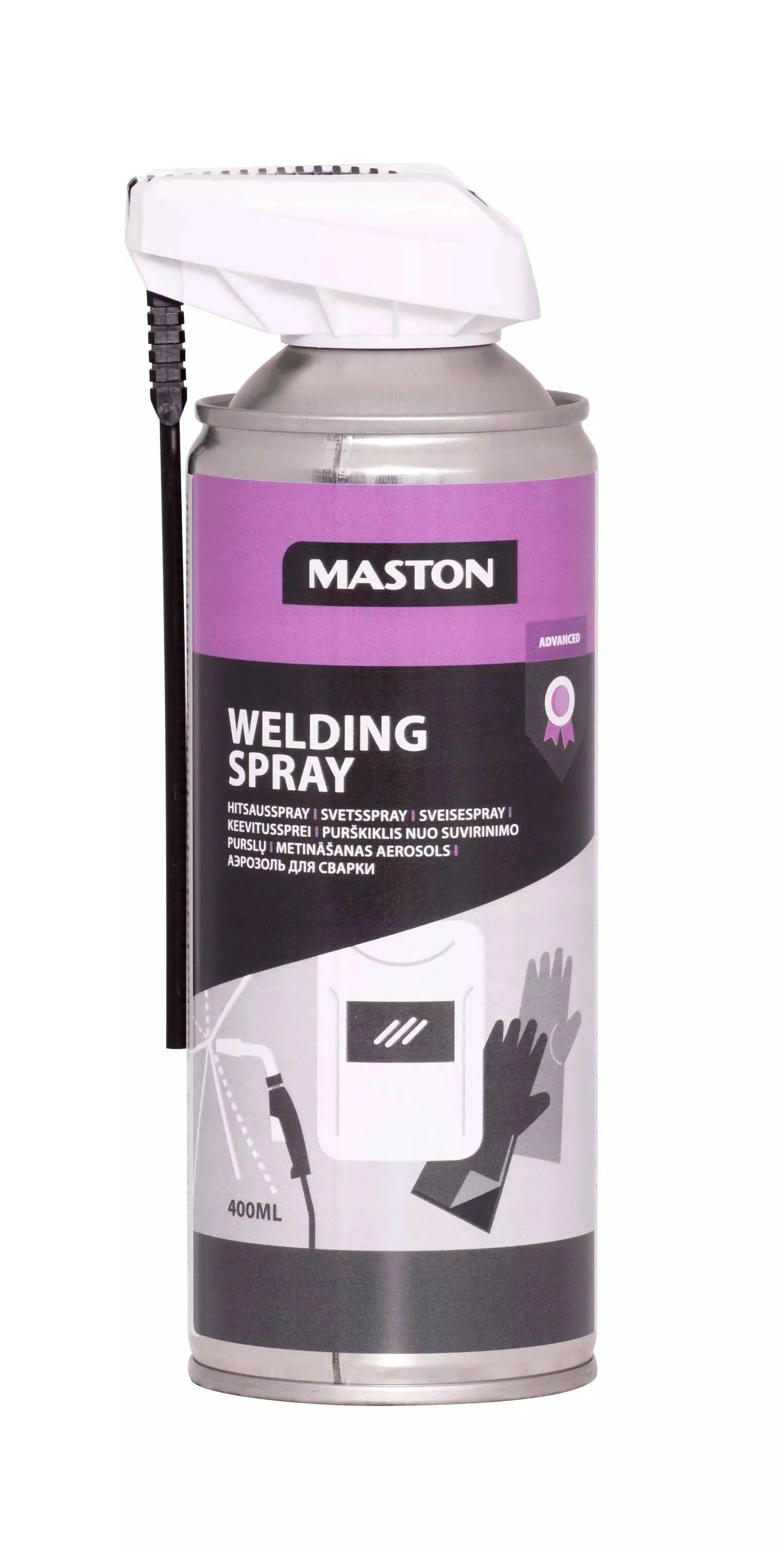 Maston Svetsspray är en högkvalitativ silikonfri svetsspray. Förhindrar att svetsstänk fastnar på munstycket och arbetsstycket. Förhindrar också effektivt igensättning av svetsmunstycket. Miljövänlig Maston Welding Spray sparar tid och pengar eftersom svetsstänk lossnar lättare och ytbehandling kan utföras direkt efter svetsning.
