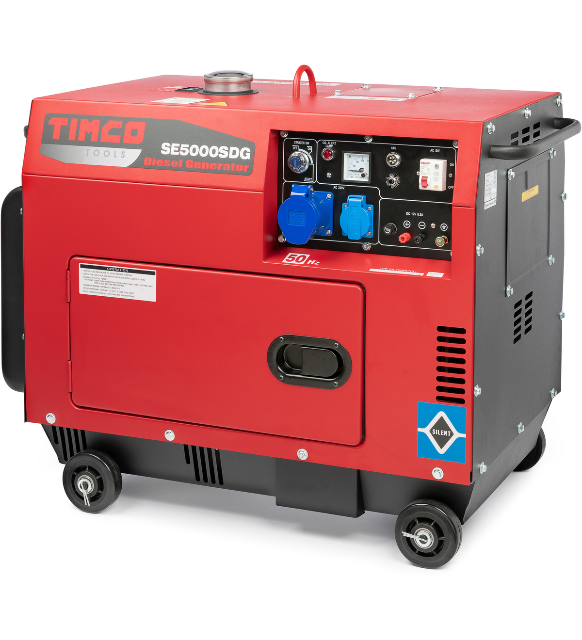 Timco TSE5000SDG är en populär 3-fasgenerator för sommarstugor och byggarbetsplatser tack vare sin tysta drift (ljudnivå endast 71 dB) och låga förbrukning.