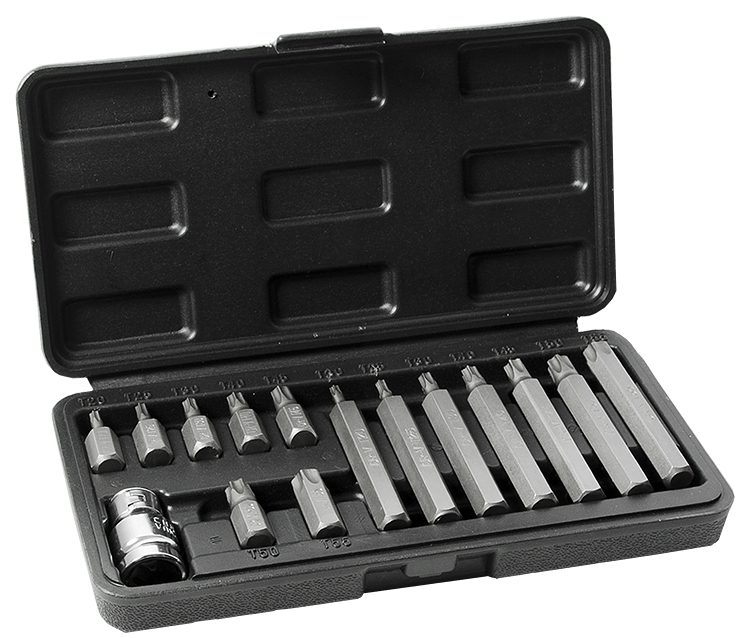 Torx bitssats 1/2" 15 delar - kromvanadinstål -15-delars set ingår --7 st 3/8" 75 mm Torx-bits: T20, T25, T30, T40, T45, T50, T55 --7 st 3/8" 30 mm Torx-bits: T20, T25, T30, T40, T45, T50, T55 --1... Läs mer