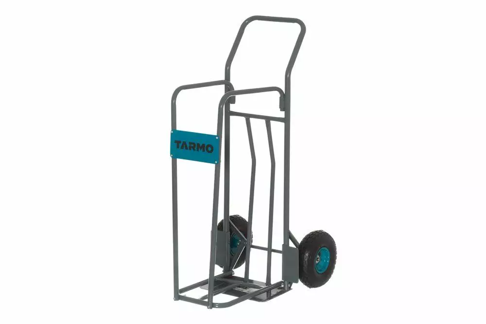 Slitstark stålram, PVC-belagda handtag och stora uppblåsbara däck gör att kärran lätt rör sig. Max belastning 150 kg.