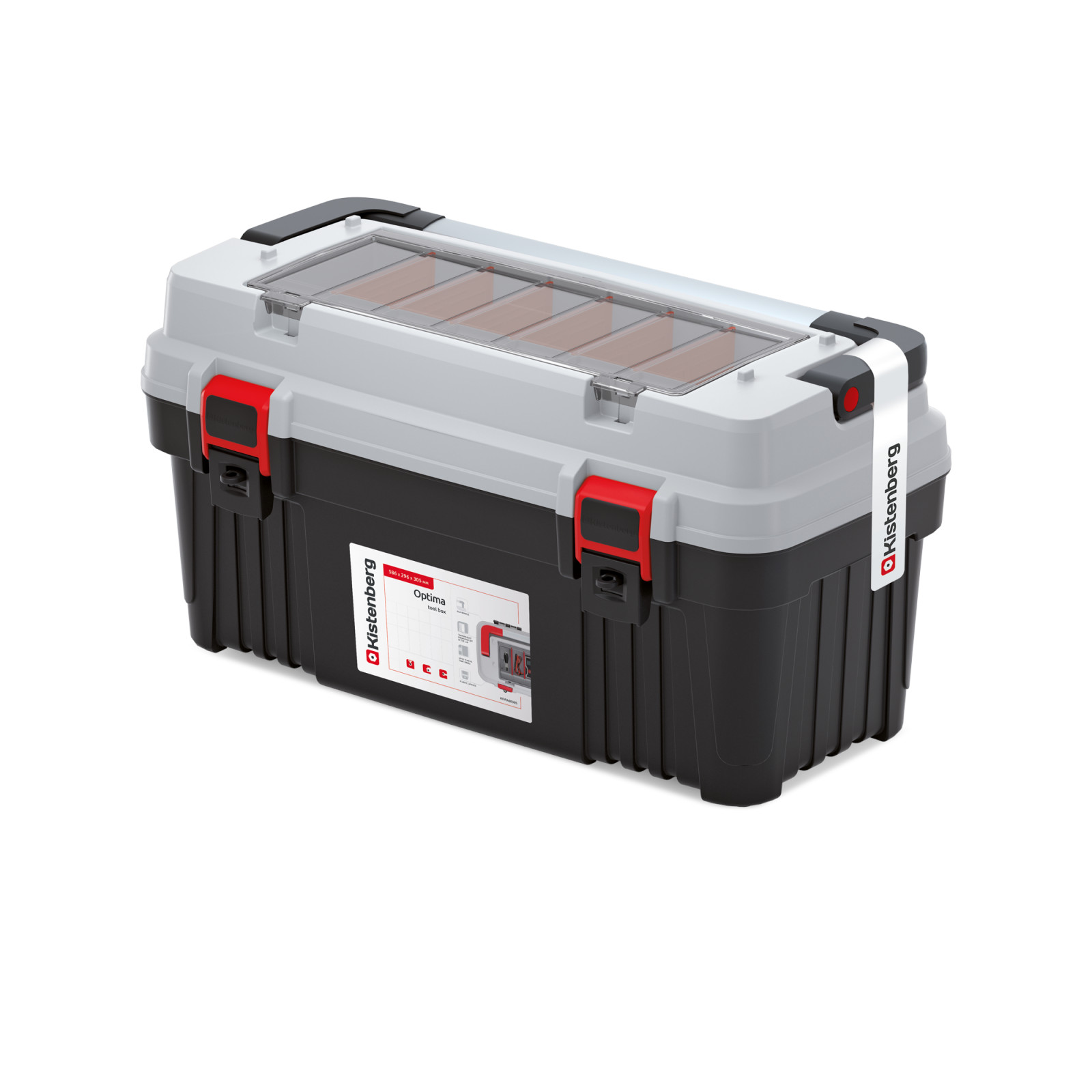 - Stor verktygslåda med fack med ett slitstarkt polykarbonatlock